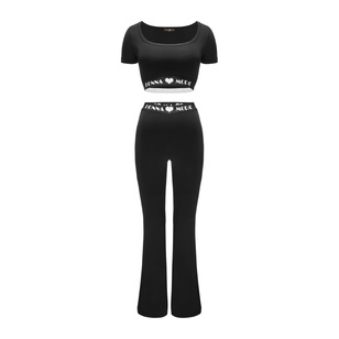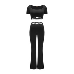 Czarny dwuczęściowy komplet top i spodnie dzwony